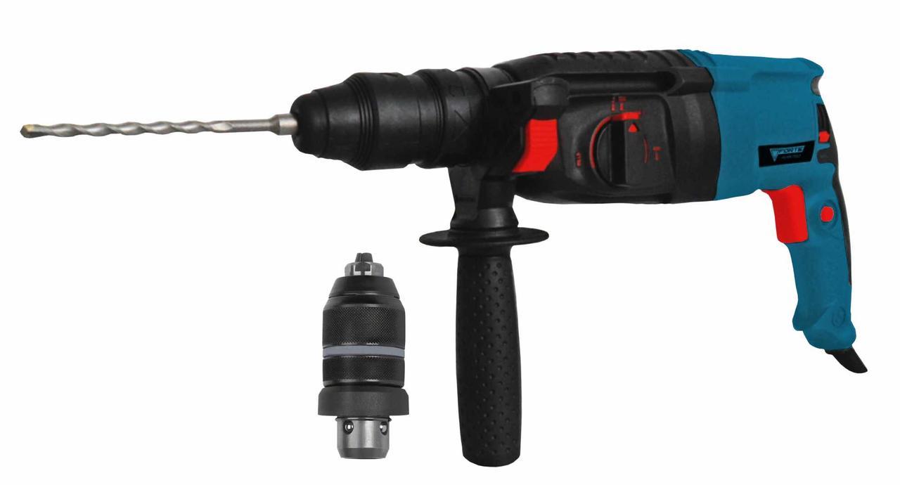 Перфоратор Сталь П 26-92 П — надійний інструмент побутового класу, що застосовується в будівництві та ремонті. Призначений для виробляння отворів у різних твердих матеріалах: камені, цеглі, бетоні. У режимі довбання перфоратор Сталь використовується для демонтажу плитки, штукатурки, проробляння штроб. Неабияк розширює сферу застосування інструменту режим свердління, завдяки якому, поставивши кулачковий патрон, можна свердлити метал, пластик, дерево. Перфоратор має потужний електромотор — 850 Вт, що дає змогу працювати з найтвердішими матеріалами. Завдяки наявності функції реверсу, є можливість звільнити свердло, що застрягло.